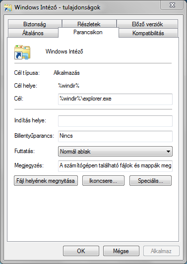 Windows Intéző (alapértelmezett):